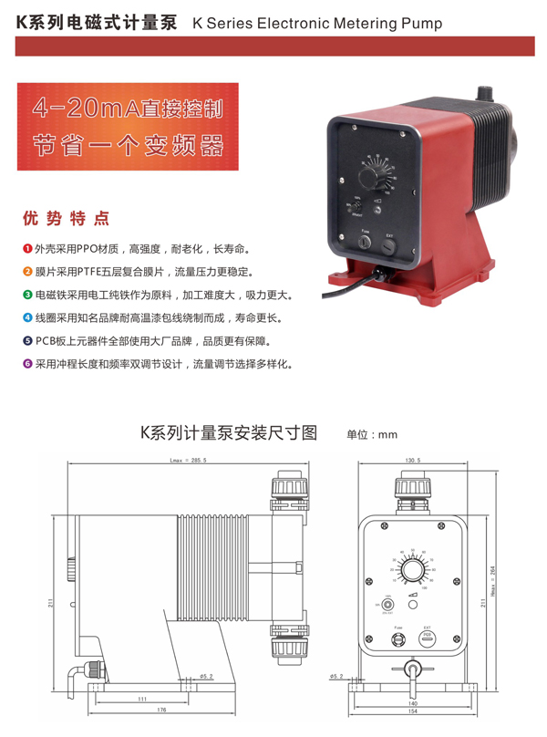 ♦ 如果現(xiàn)場(chǎng)需要外部控制,如4-20MA,脈沖信號(hào),K系列電磁計(jì)量泵